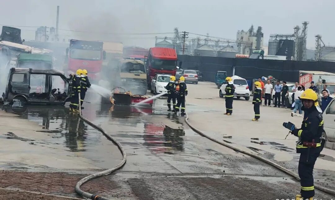 演练现场模拟真实火情,滚滚浓烟伴随着熊熊火焰迅速蔓延,安保值班人员第一时间发现火情并立即向主要领导上报情况,同步执行应急预案启动工作。工作人员严格按照“119报警+应急小组响应”流程,精准报告火情位置、火势大小等关键信息,由调度现场行动组同步开展火灾初期处置工作,为消防救援队伍抵达火灾现场争取宝贵时间。大家沿预定路线快速撤离至安全区域,在火势“蔓延”后,消防救援队伍抵达火灾现场后,迅速架设灭火阵地,利用泡沫、干粉等器材完成灭火作业。在演练总结环节,消防救援大队对演练全过程进行了专业细致的复盘点评,充分肯定了园区应急响应的规范性和协同性,并针对油品起火、煤气罐起火、车辆起火等常见火情,通过案例解析和实操演示开展“手把手”教学,取得了良好的演练成效。