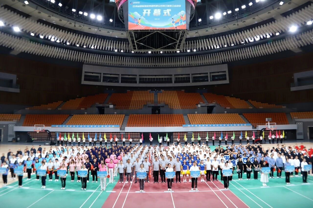 三载筑基业,丝路链全球。 甘肃国际物流集团第三届职工运动会在兰州奥体中心正式开幕。集团公司党委书记、董事长张铁强出席开幕式并致辞,集团公司党委副书记、工会主席李国胜主持,集团公司在家领导班子成员出席。
