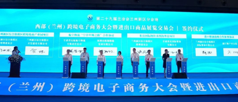 甘肃物流集团综保区公司作为签约单位受邀参加了本届兰洽会兰州新区分会场—2023首届西部(兰州)跨境电商大会暨进出口商品展览交易会,与兰州新区综合保税区管理委员会签订了兰州新区综合保税区跨境电商产业园项目合作协议,与物产中大化工集团签订了战略合作框架协议,与XUNYU LOGISTICS HK LIMITED成功签订进口产品购销业务合作协议。